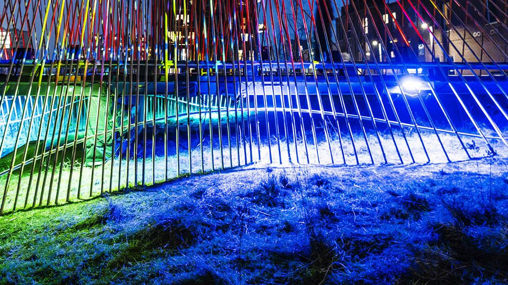 1/11-14/12 In den Medizin-Gärten erhebt sich Bamboo-Light-Construction wie eine leuchtende Skulptur, die die natürliche Eleganz von Bambus mit Licht- und Videoeffekten vereint.